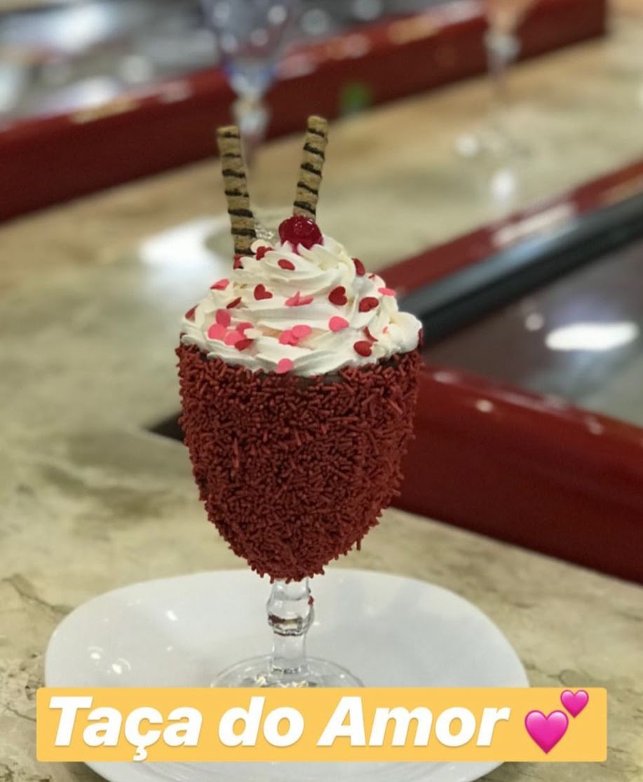 Taça do AmorSorvete, chantelly, biju, confetes e cobertura.R$ 21,00