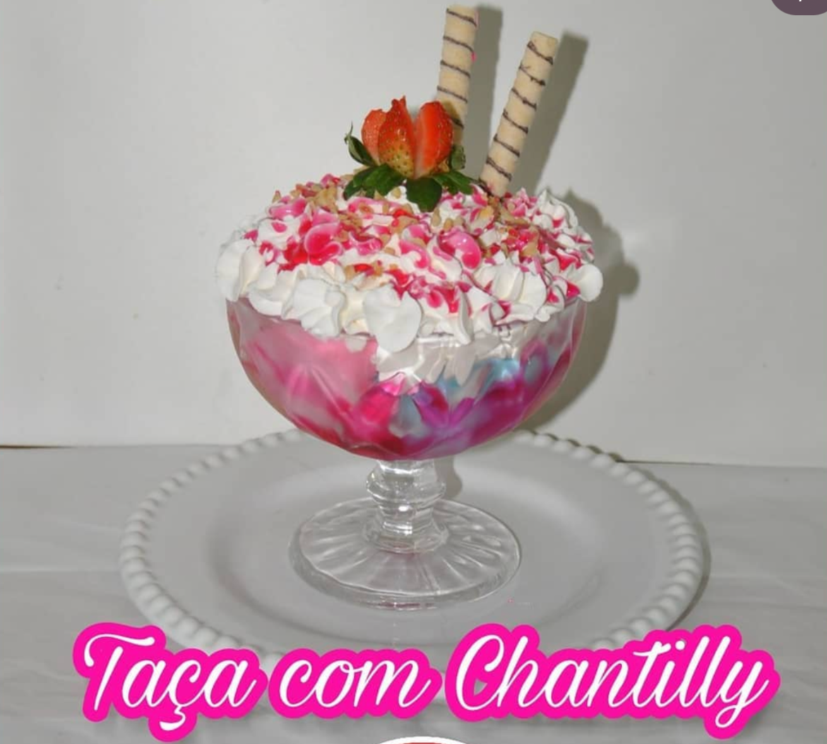 Taça com ChantillySorvete, chantelly, castanha e biju.R$ 18,00 -